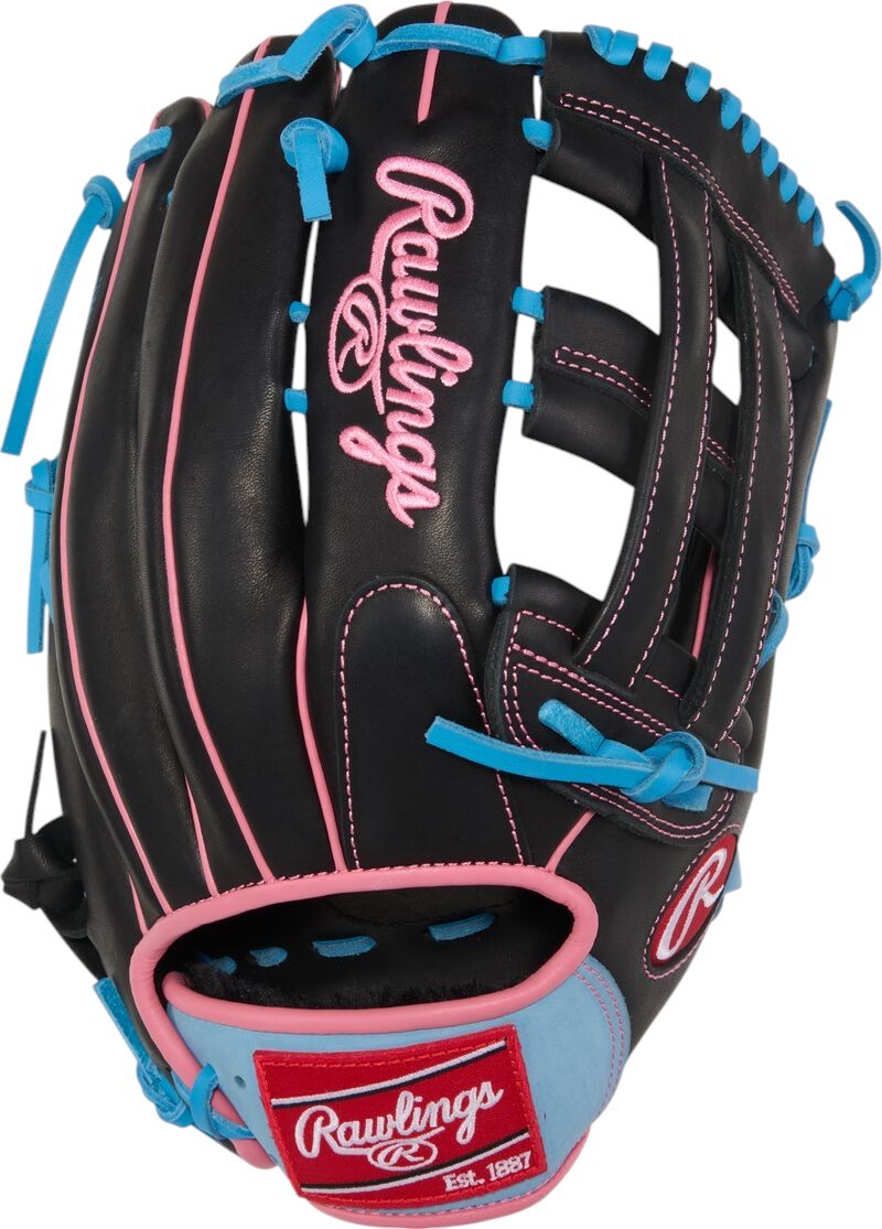 Turn heads on the field with the exclusive Rawlings REV1X 12.75-inch outfield glove! This glove features a striking Columbia Blue and Purple sublimated backhand with bold edges for undeniable appeal. The palm is crafted from premium Columbia Blue leather, paired with purple laces and accents for a vibrant, playful finish. Engineered with REV1X technology,...